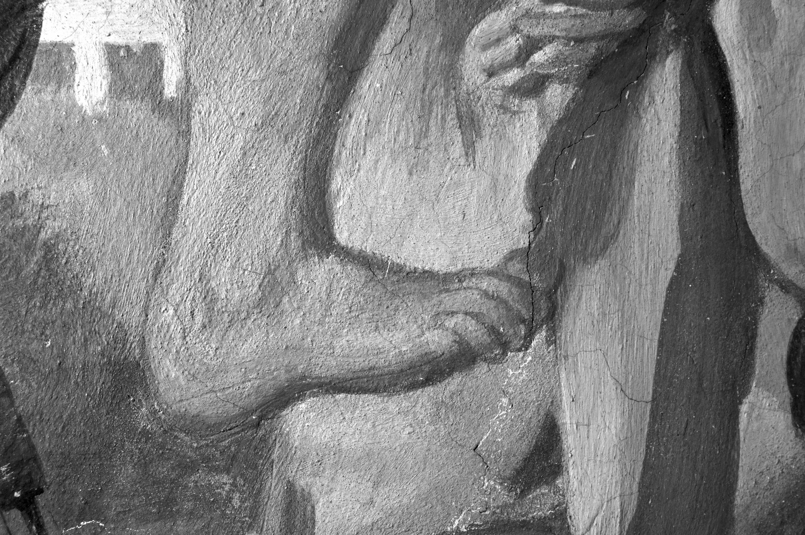 Per quanto riguarda le indagini in infrarosso, emerge come in fase grafica alcuni elementi figurativi siano tracciati con tratti rapidi e sicuri a sketch mediante un mezzo secco a punta fine: ciò è particolarmente evidente nei tratti anatomici del San Rocco e del soldato che lo conduce in carcere e nelle principali linee di contorno. Tali elementi vengono ripresi in fase pittorica mediante l’impiego di un tratto bruno-nero steso a pennello. I particolari secondari come gli alberi o il breve scorcio di paesaggio nonché alcune componenti figurative sono realizzate direttamente a pennello.