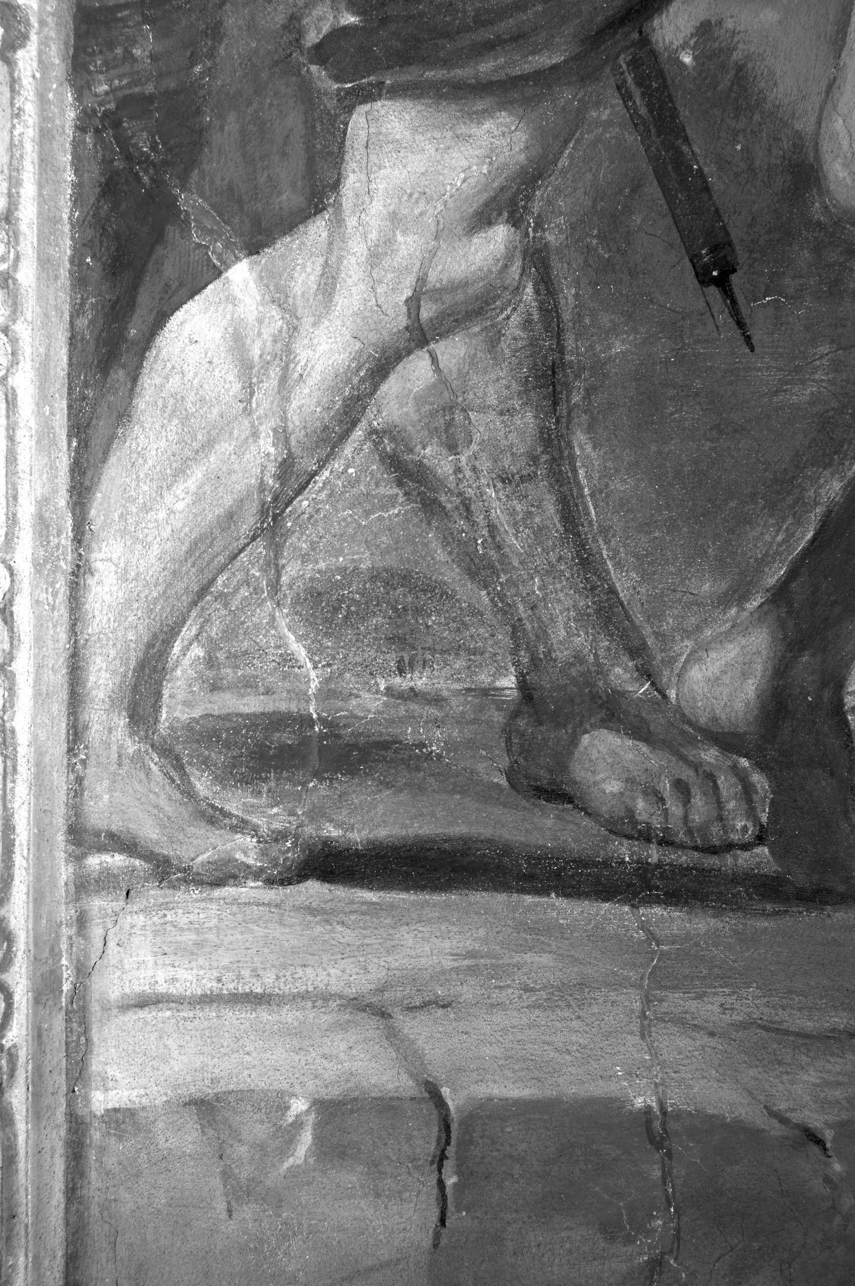 Il modus operandi del Guercino come decoratore murale viene indagato tramite tecniche diagnostiche multispettrali come le riprese in luce radente e la riflettografia infrarossa (IR). L’osservazione in luce radente permette di osservare come il pittore imposti l’opera per mezzo di incisioni dirette con modalità a sketch, condotte con tratti sicuri veloci e medio-brevi. Spesso i ripensamenti e le correzioni sono realizzati nel medesimo frangente o, comunque, subito dopo. In riferimento all’architettura, le engravings vengono impiegate in prevalenza nella parte superiore della composizione, anche mediante l’ausilio di una riga, mentre nella parte inferiore viene preferita una traccia grafica. I progetti grafici spesso non vengono seguiti pedissequamente in fase pittorica. Lo studio delle immagini in luce radente consente inoltre l’identificazione sulla superficie pittorica di sovrapposizioni di stesure di intonaco probabilmente correlabili alle cosiddette “giornate”.